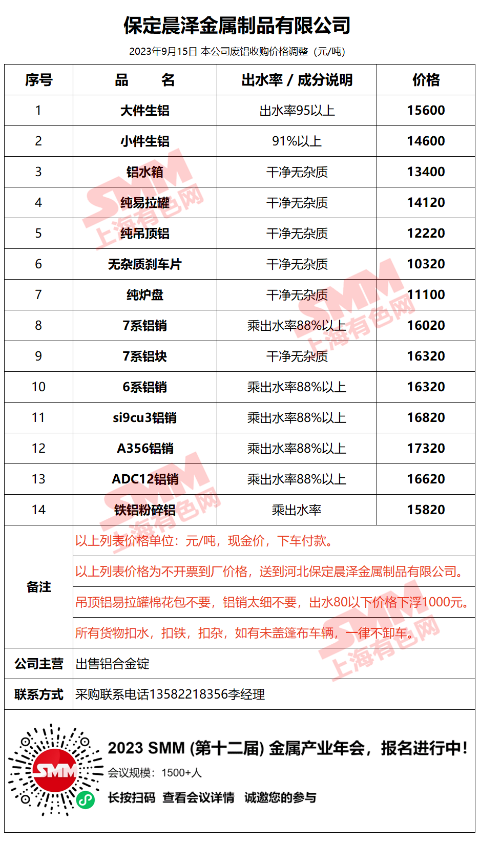 今日保定晨泽金属制品有限公司 废铝采购报价已更新,有货的朋友欢迎联系我们!