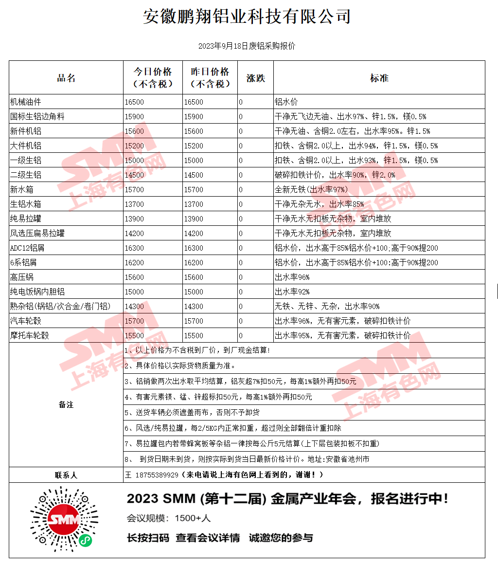 今日安徽鹏翔 废铝采购报价已更新,有货的朋友欢迎联系我们!