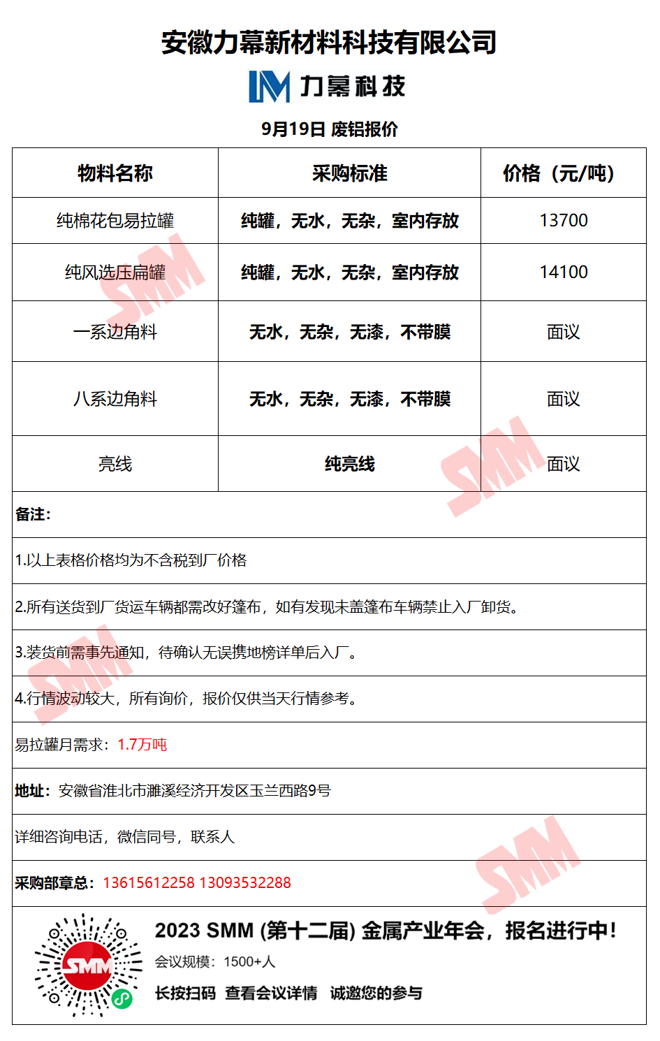 今日安徽力幕新材料科技有限公司 废铝采购报价已更新,有货的朋友欢迎联系我们!