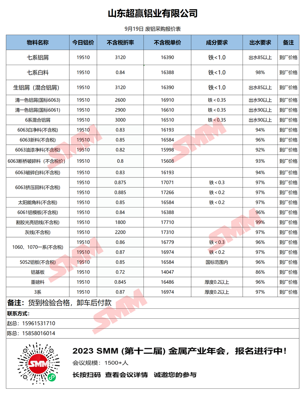 9月19日超赢铝业 废铝采购报价