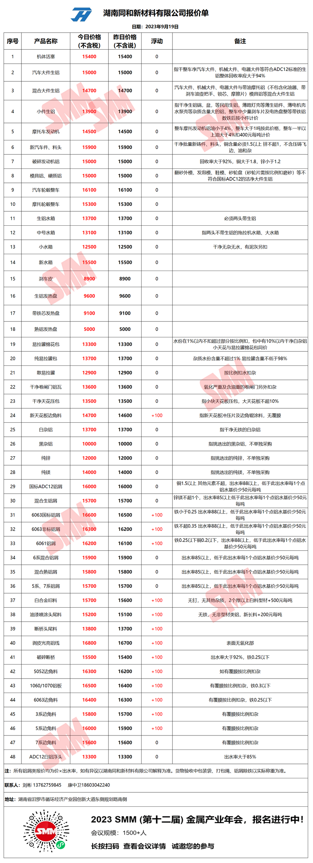 今日湖南同和 废铝采购报价已更新,有货的朋友欢迎联系我们!