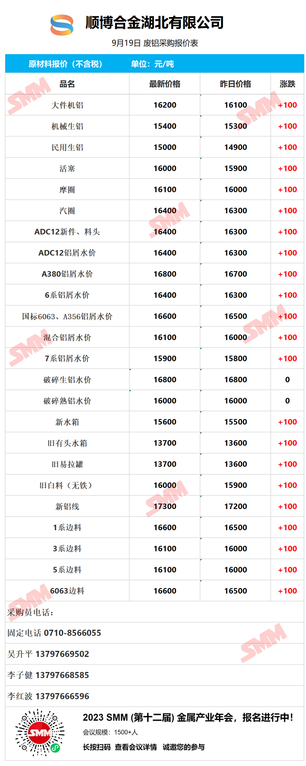 今日顺博合金湖北废铝采购报价已更新,有货的朋友欢迎联系我们!