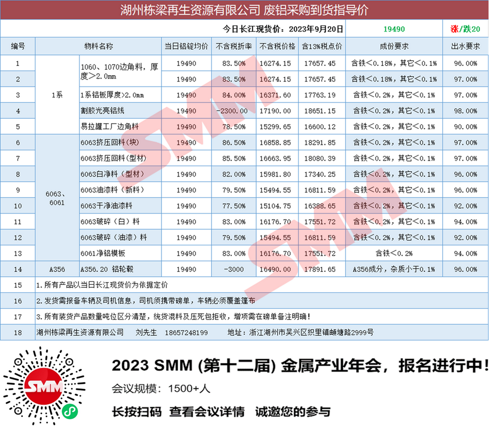 今日湖州栋梁 废铝采购报价已更新,有货的朋友欢迎联系我们!