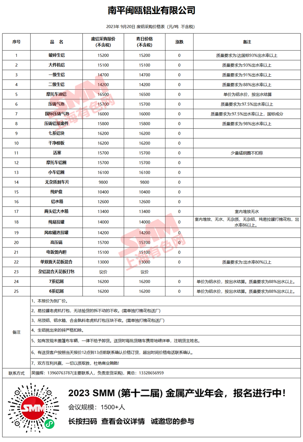 今日南平闽瓯 废铝采购报价已更新,有货的朋友欢迎联系我们!