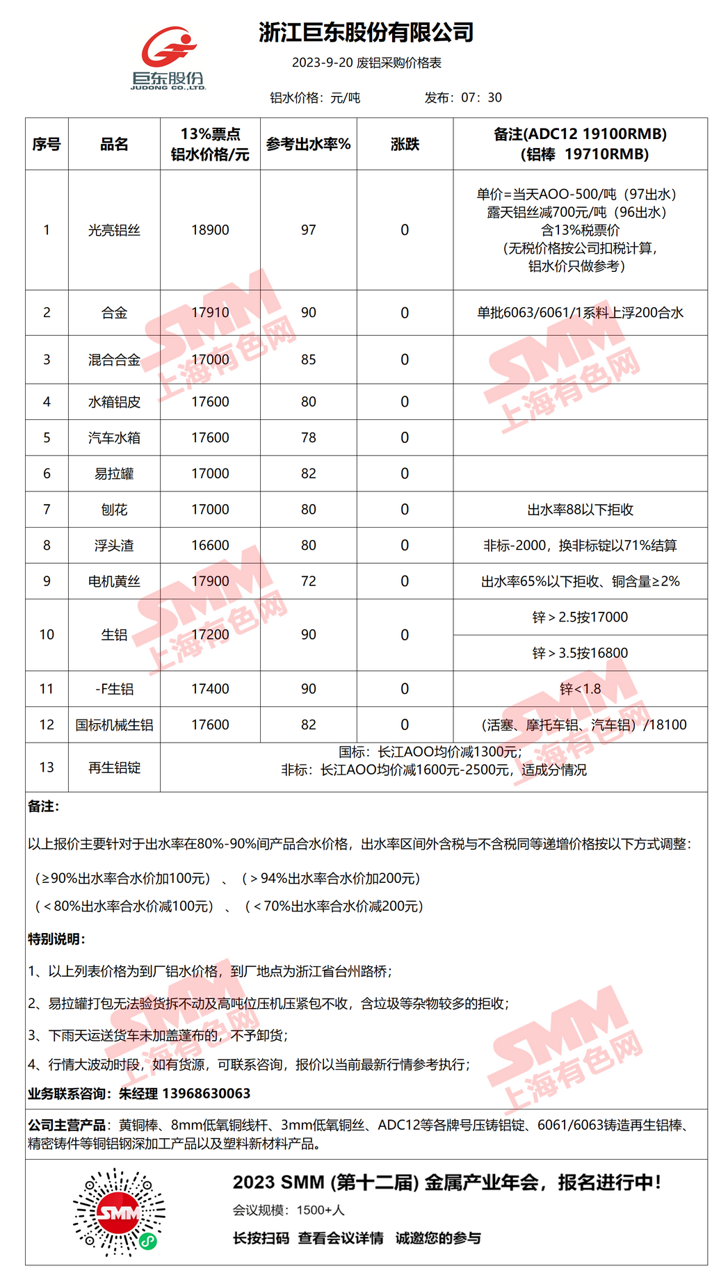 9月20日浙江巨东 废铝采购报价