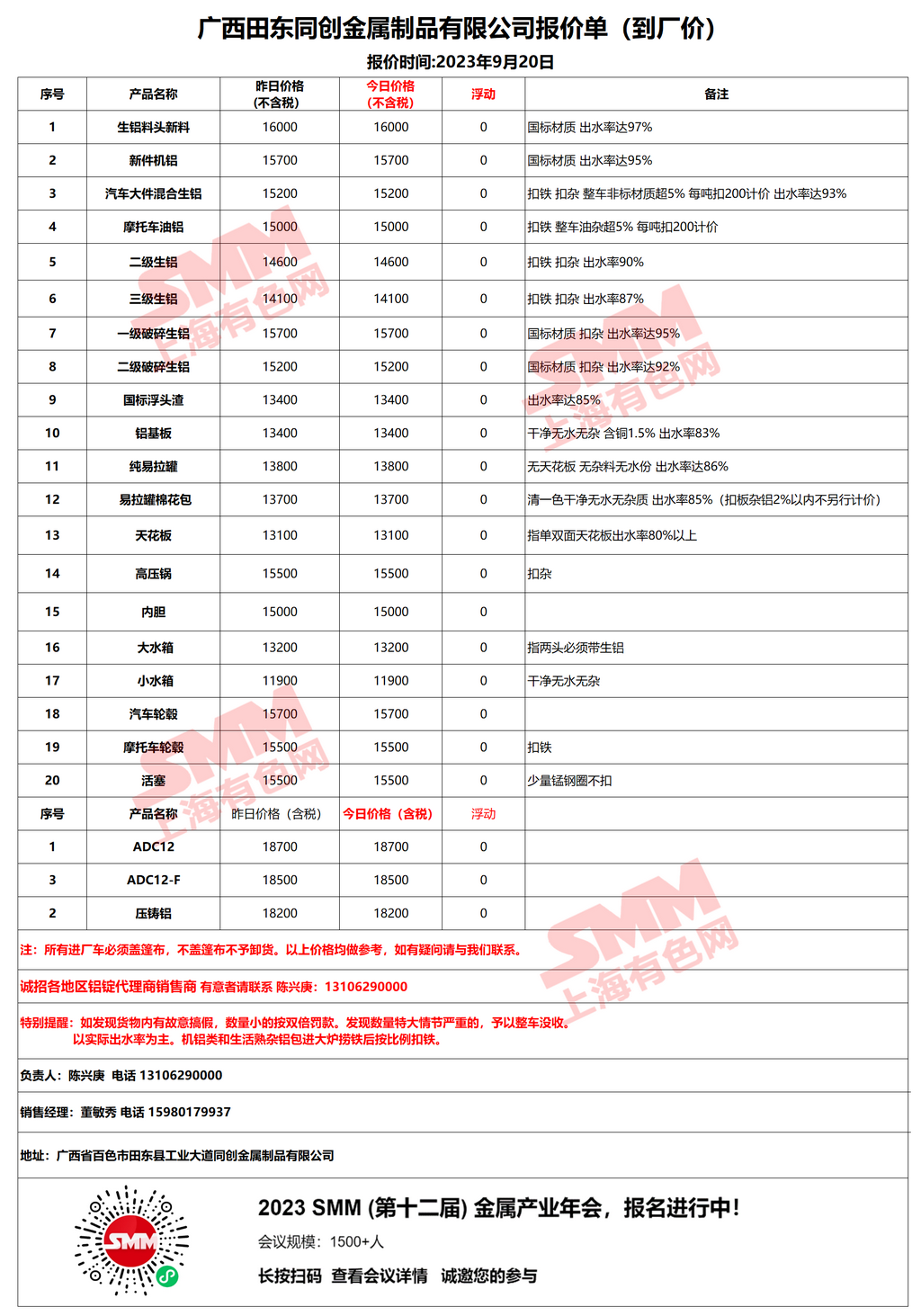 9月20日广西同创 废铝采购报价