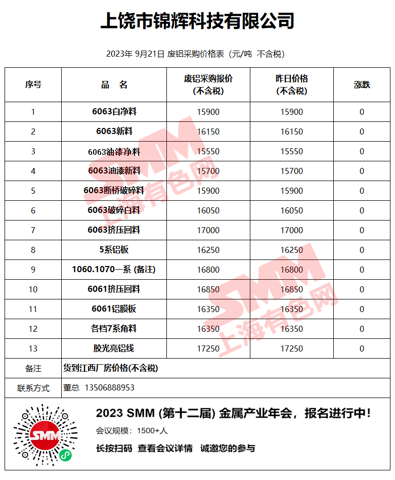 今日上饶锦辉 废铝采购报价已更新,有货的朋友欢迎联系我们!