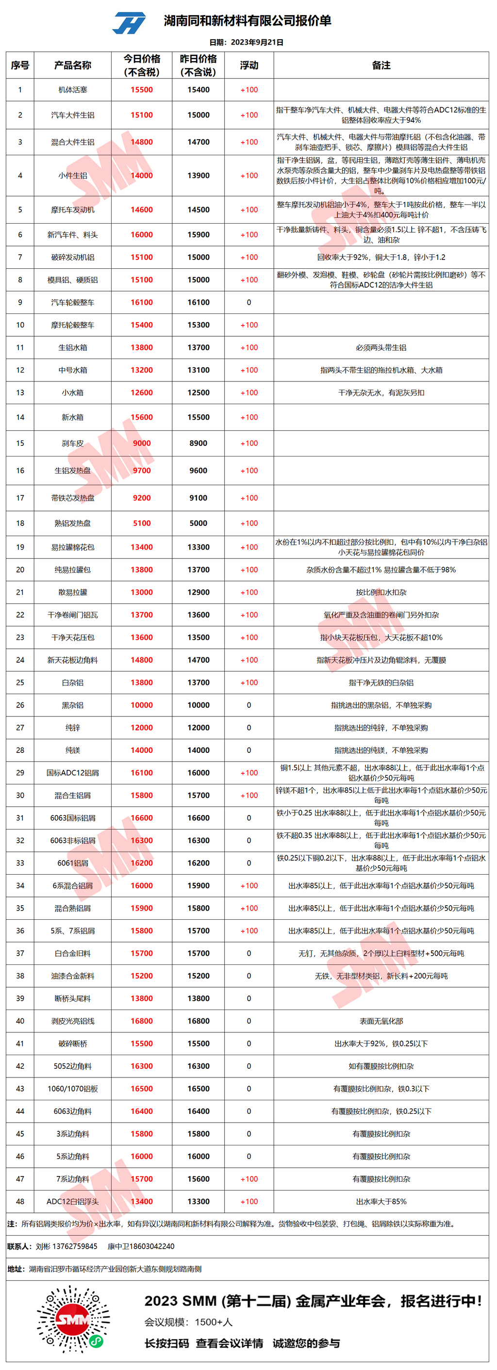 今日湖南同和 废铝采购报价已更新,有货的朋友欢迎联系我们!
