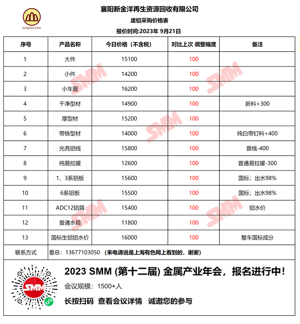 今日襄阳新金洋 废铝采购报价已更新,有货的朋友欢迎联系我们!