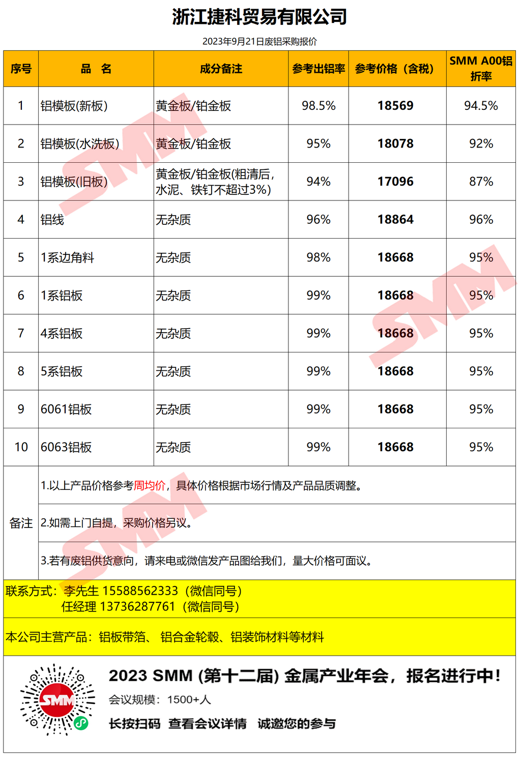 今日捷科贸易 废铝采购报价已更新,有货的朋友欢迎联系我们!