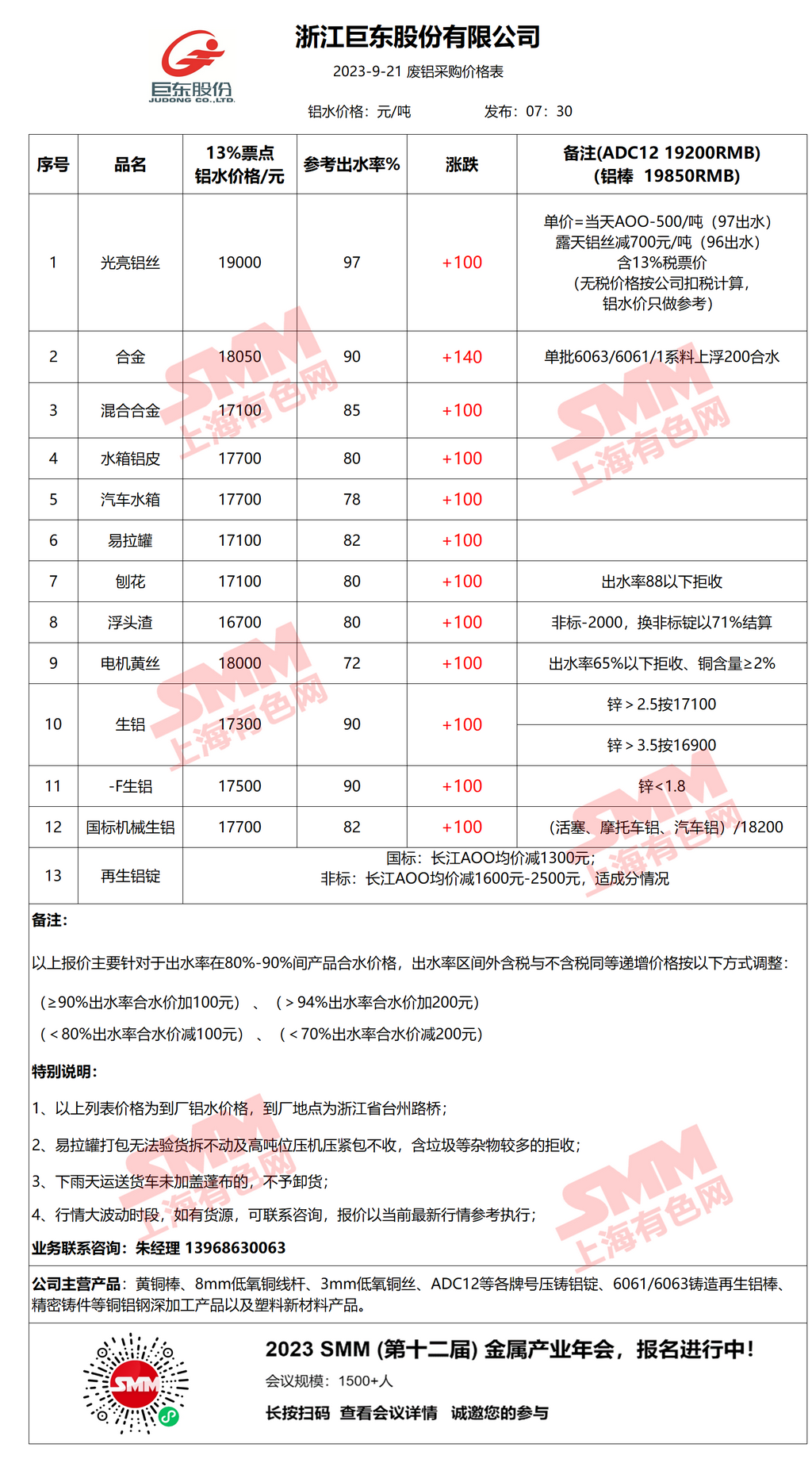 9月21日浙江巨东 废铝采购报价