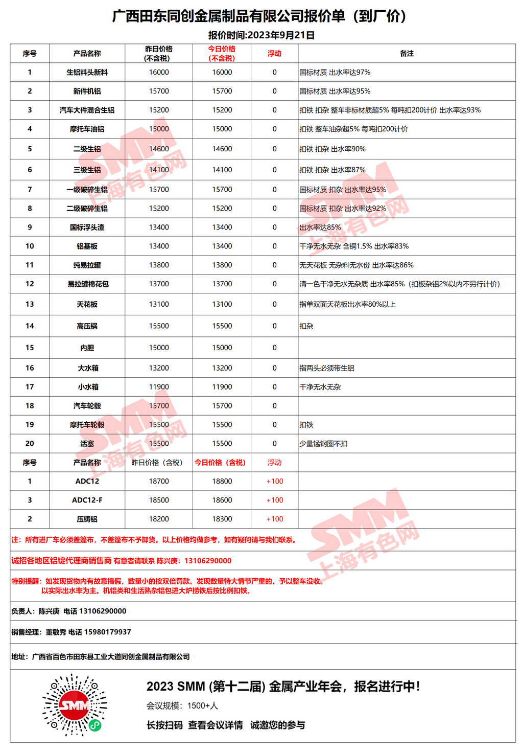今日广西田东同创金属制品有限公司 废铝采购报价已更新,有货的朋友欢迎联系我们!