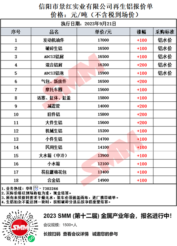 今日河南信阳景红铝业 废铝采购报价已更新,有货的朋友欢迎联系我们!