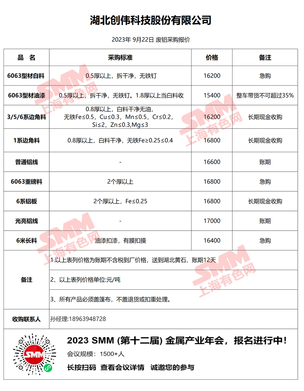 再生金属企业报价合作需求,欢迎联系:13585952056 王