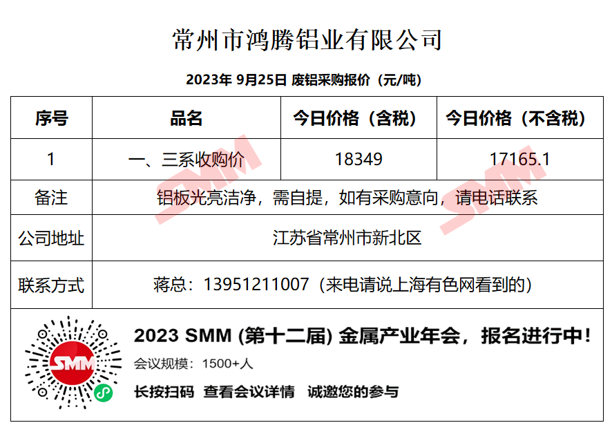 今日常州市鸿腾铝业有限公司 废铝采购报价已更新,有货的朋友欢迎联系我们!