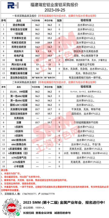 今日福建瑞宏 废铝采购报价已更新,有货的朋友欢迎联系我们!