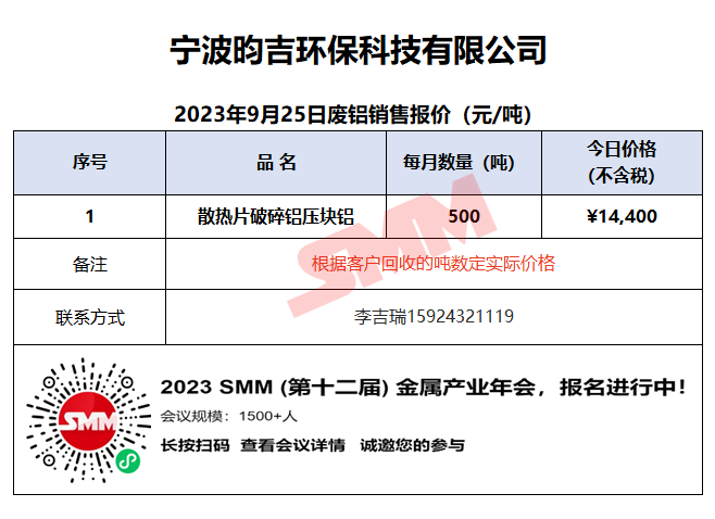 9月25日宁波昀吉 废铝销售报价