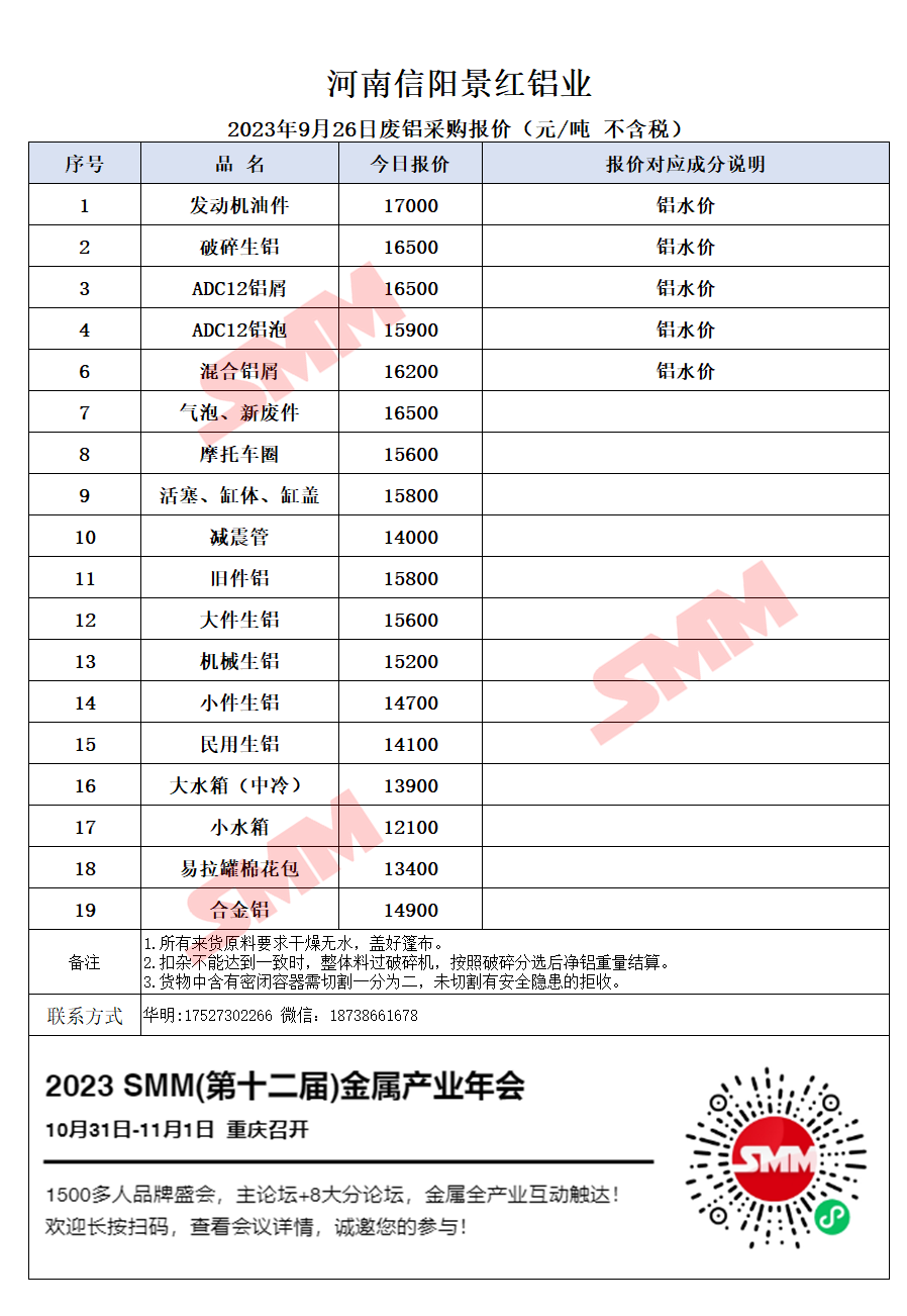 9月26日河南景红 废铝采购报价