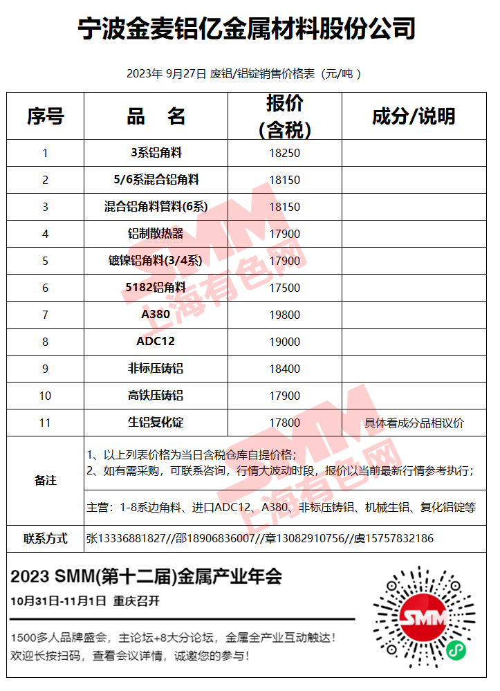今日宁波金麦铝亿金属材料股份公司 废铝销售报价已更新,有采购意向的朋友欢迎联系我们!