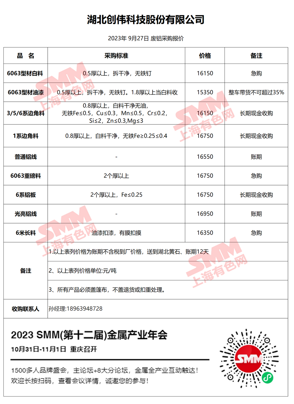 再生金属企业报价合作需求,欢迎联系:13585952056 王