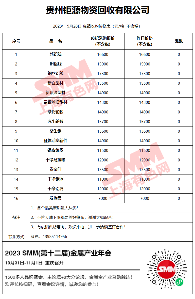 今日贵州钜源物资回收有限公司 废铝采购报价已更新,有货的朋友欢迎联系我们!