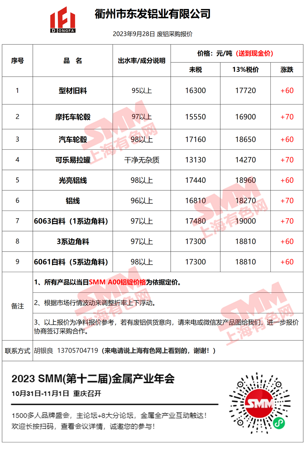 今日衢州东发 废铝采购报价已更新,有货的朋友欢迎联系我们!