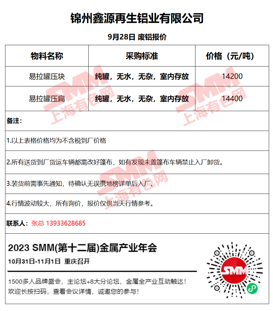 今日锦州鑫源再生铝业有限公司 废铝采购报价已更新,有货的朋友欢迎联系我们!