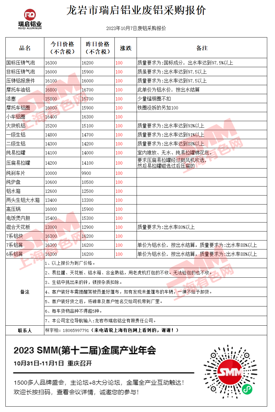 今日龙岩瑞启 废铝采购报价已更新,有货的朋友欢迎联系我们!