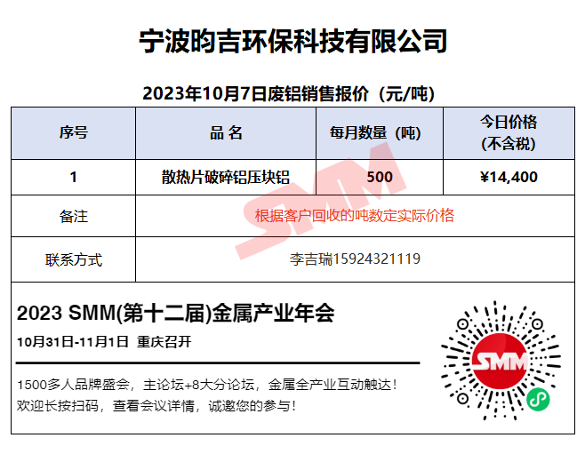 10月7日宁波昀吉 废铝销售报价