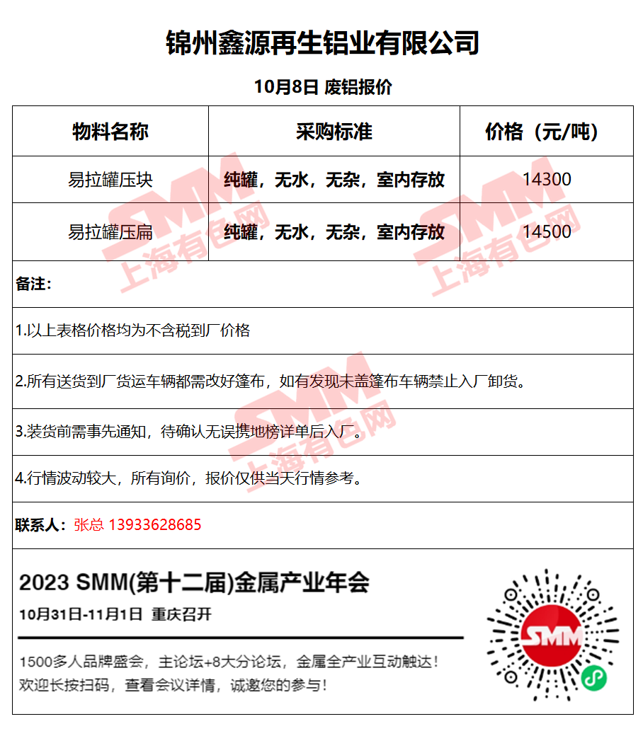 10月8日鑫源再生 废铝采购报价