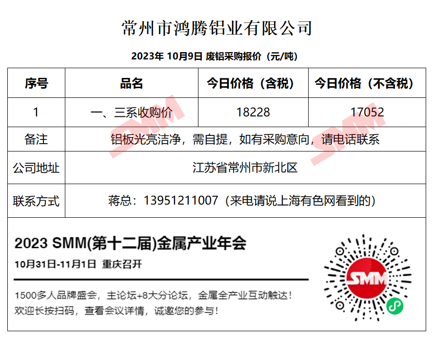 今日常州市鸿腾铝业有限公司 废铝采购报价已更新,有货的朋友欢迎联系我们!