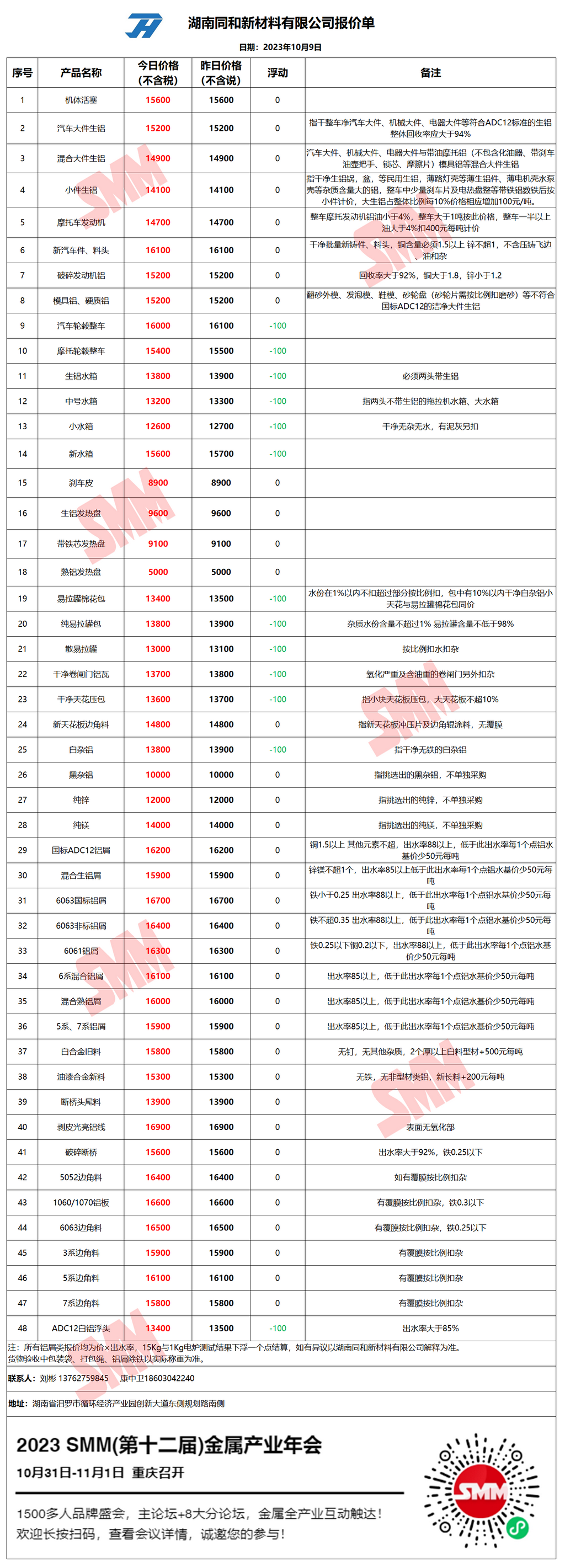 今日湖南同和 废铝采购报价已更新,有货的朋友欢迎联系我们!