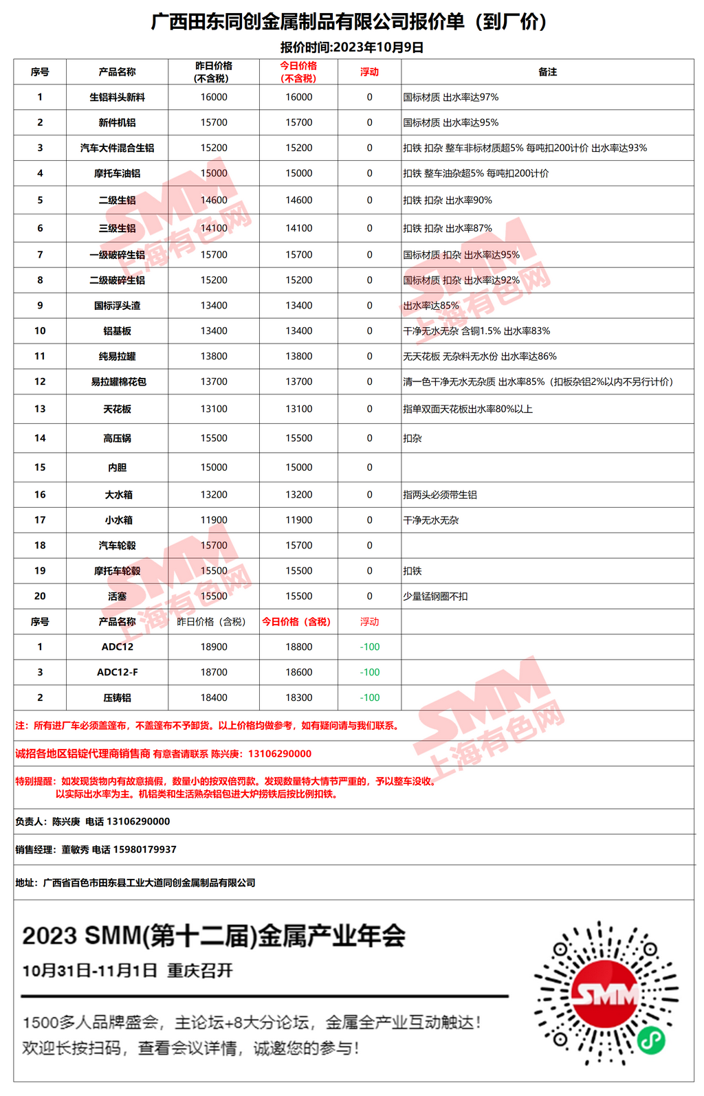 今日广西田东同创金属制品有限公司 废铝采购报价已更新,有货的朋友欢迎联系我们!