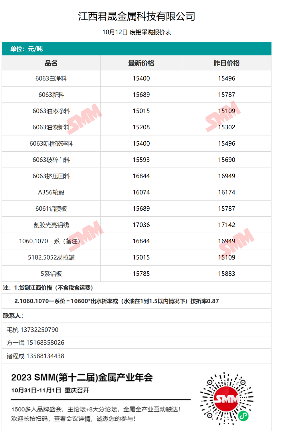 今日江西君晟金属 废铝采购报价已更新,有货的朋友欢迎联系我们!