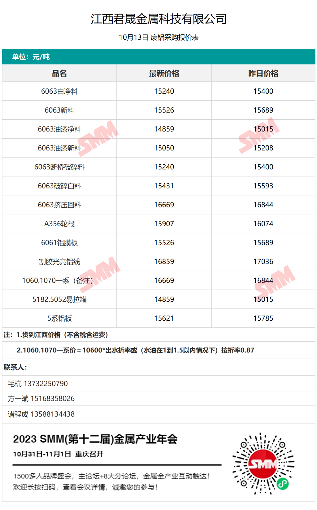 今日江西君晟金属 废铝采购报价已更新,有货的朋友欢迎联系我们!