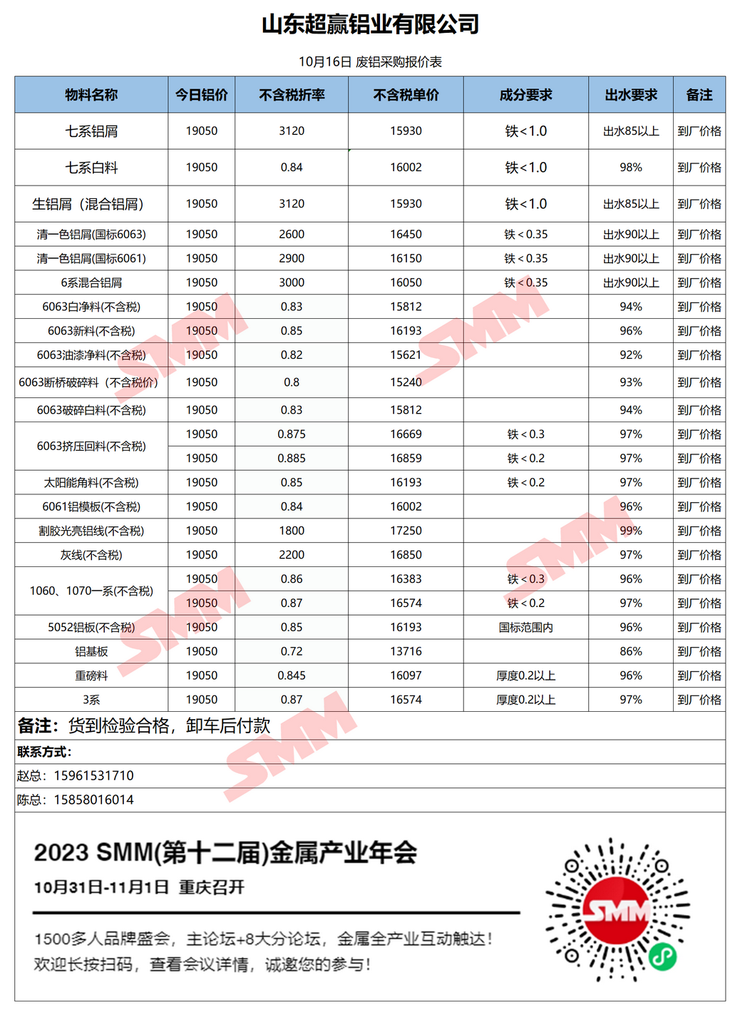 今日超赢铝业 废铝采购报价已更新,有货的朋友欢迎联系我们!
