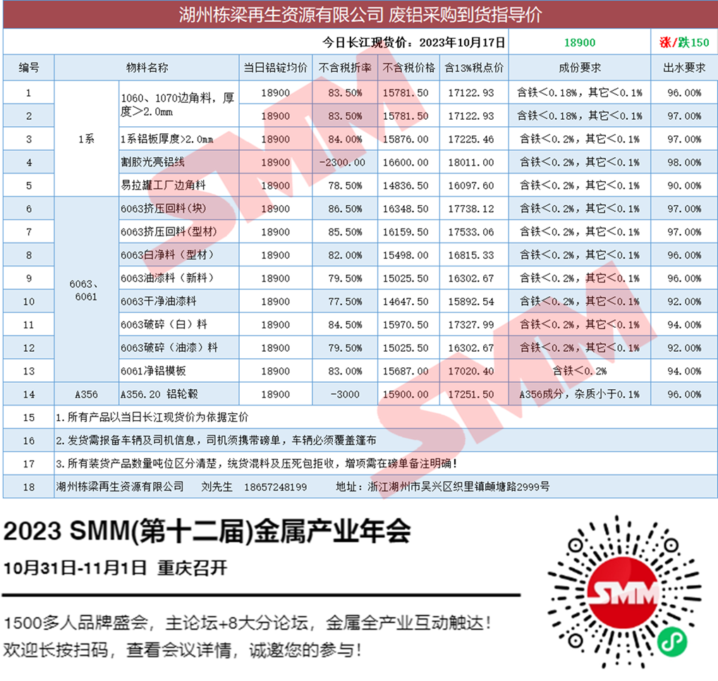 10月17日湖州栋梁再生 废铝采购报价