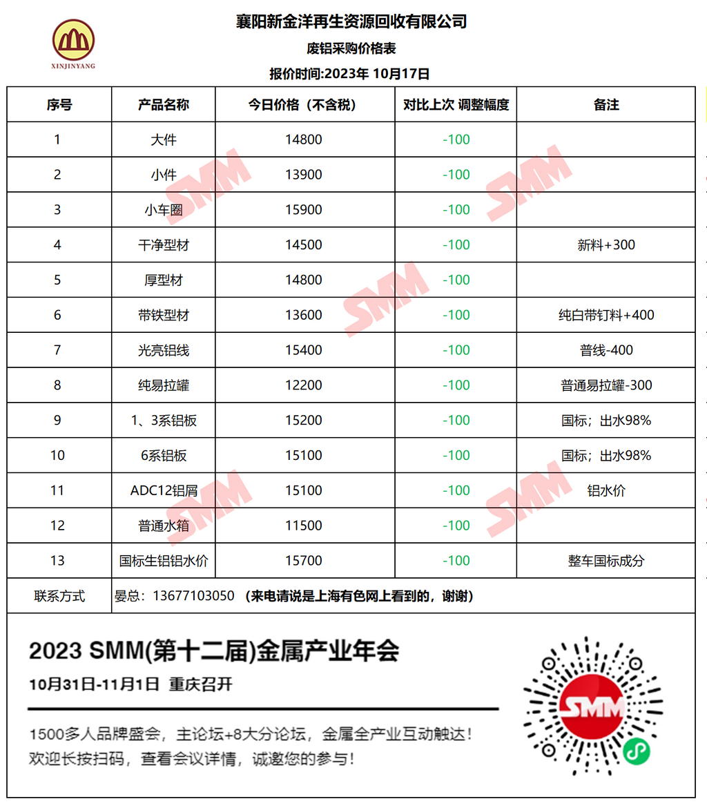 今日襄阳新金洋 废铝采购报价已更新,有货的朋友欢迎联系我们!