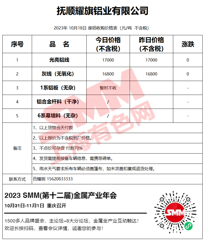 今日抚顺耀旗铝业有限公司 废铝采购报价已更新,有货的朋友欢迎联系我们!