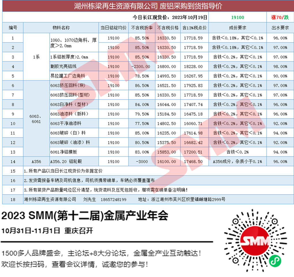 10月19日湖州栋梁再生 废铝采购报价