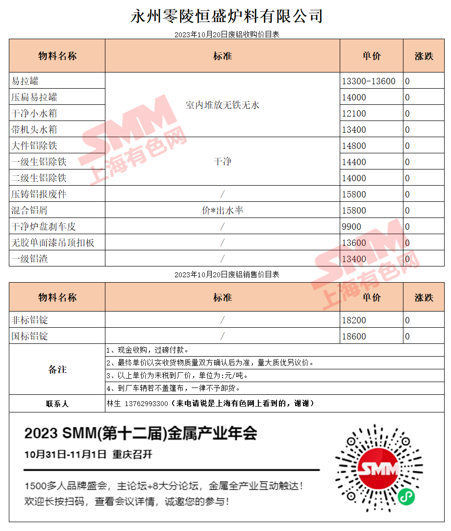 10月20日湖南恒盛 废铝收购报价