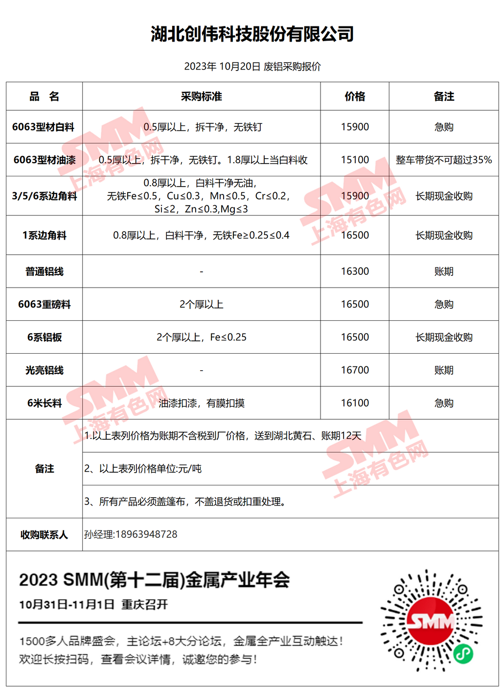 再生金属企业报价合作需求,欢迎联系:13585952056 王