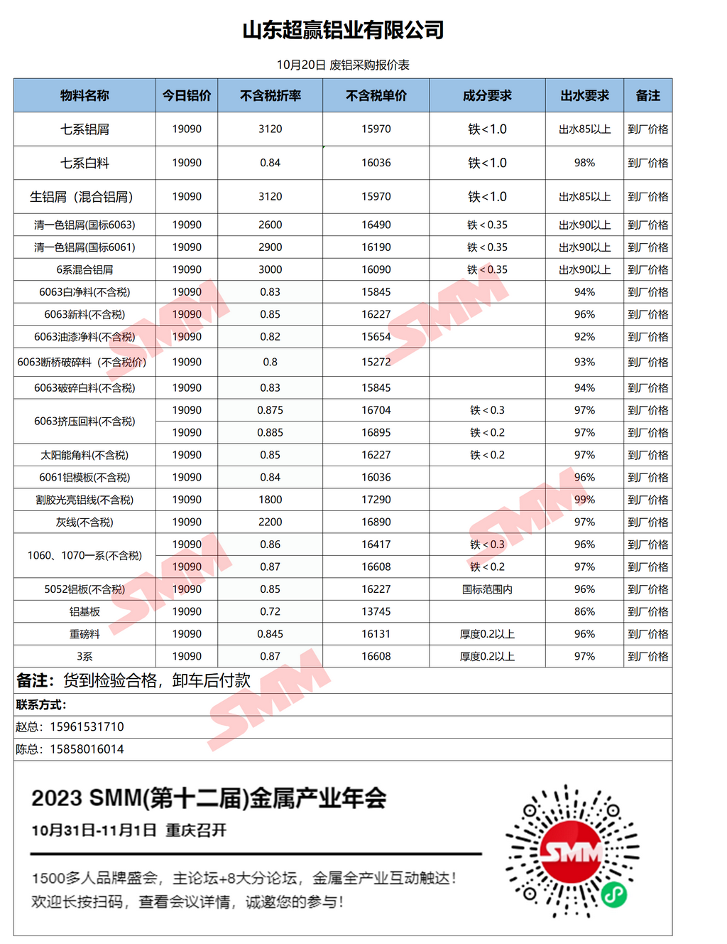 今日超赢铝业 废铝采购报价已更新,有货的朋友欢迎联系我们!