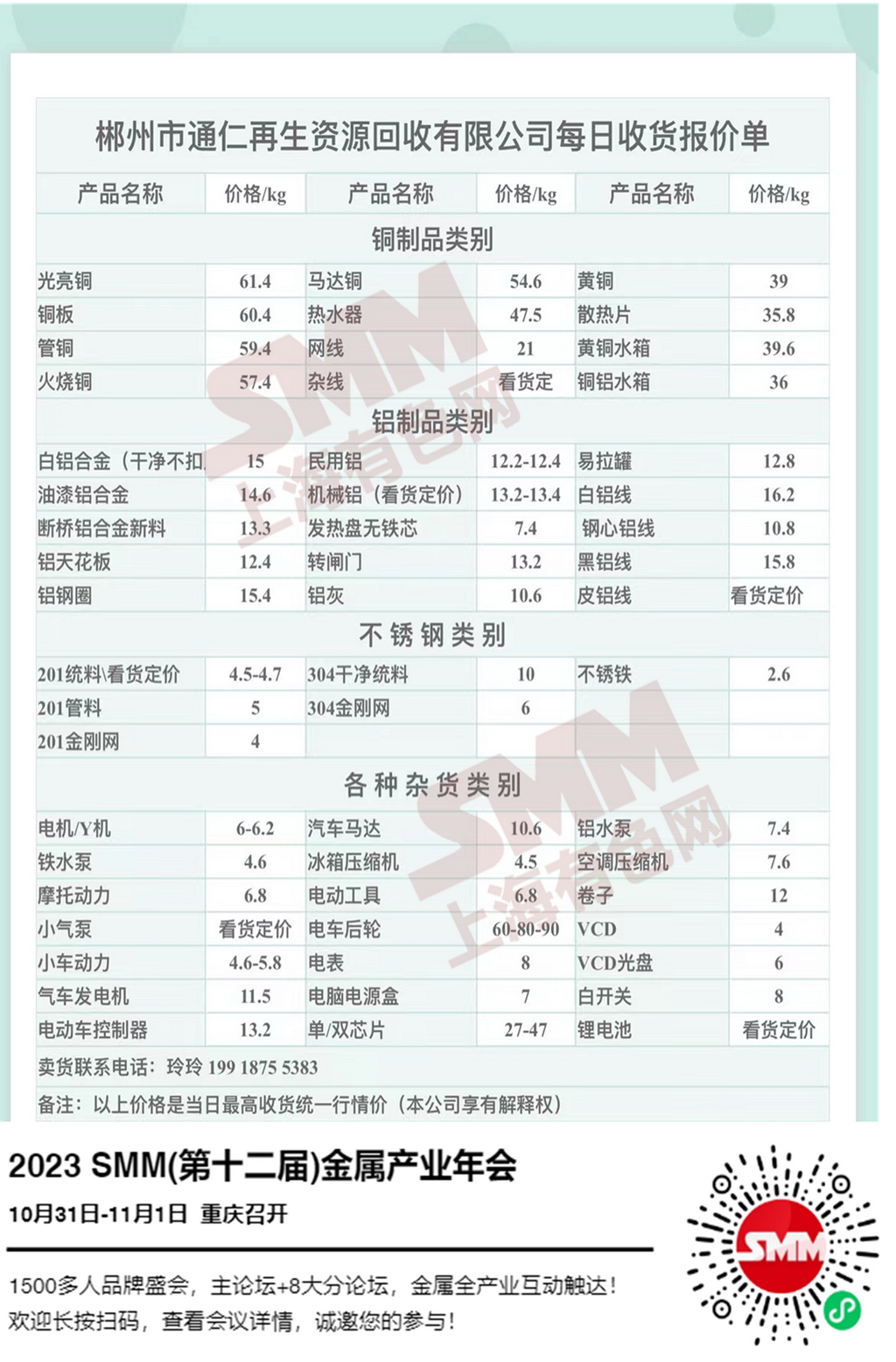 今日郴州市通仁再生资源回收有限公司 废金属收购报价已更新,有货的朋友欢迎联系我们!
