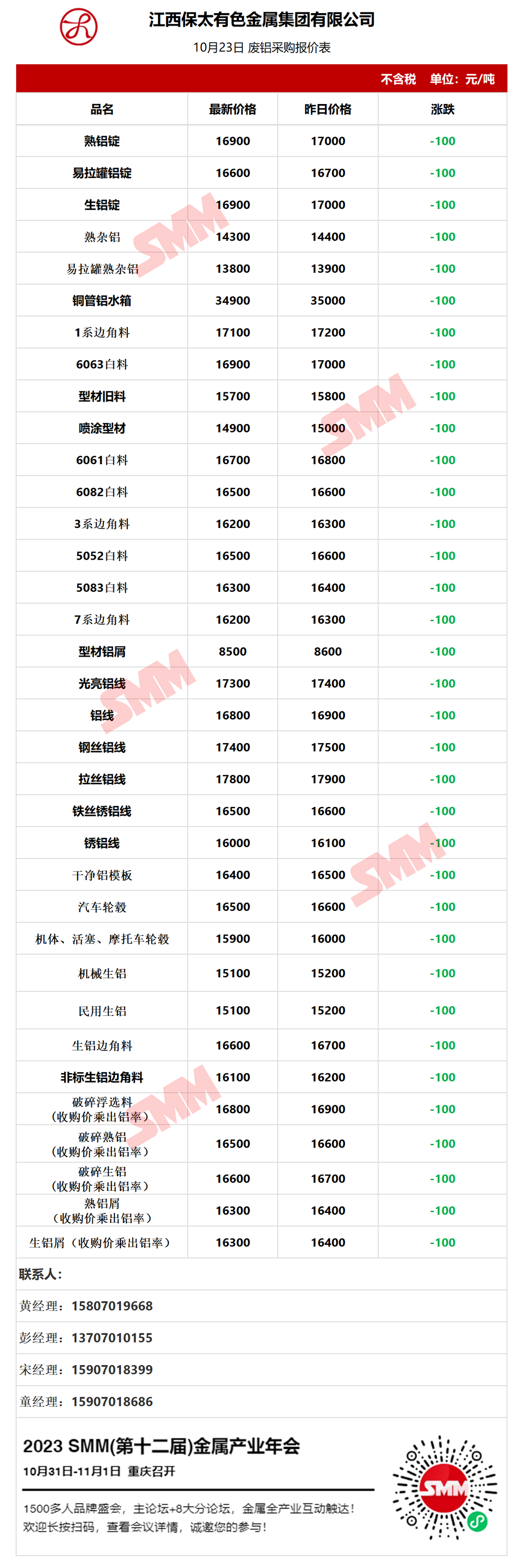 今日江西保太有色金属集团 废铝采购报价已更新,有货的朋友欢迎联系我们!