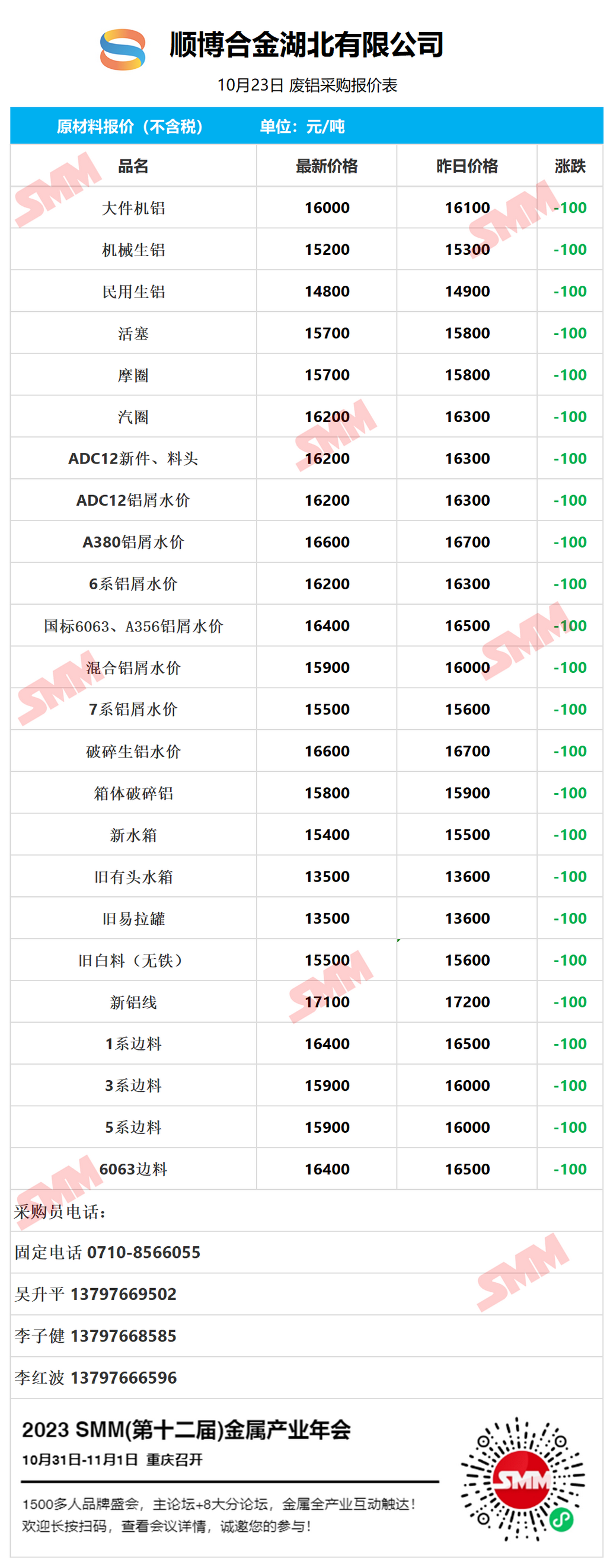 今日顺博合金湖北废铝采购报价已更新,有货的朋友欢迎联系我们!