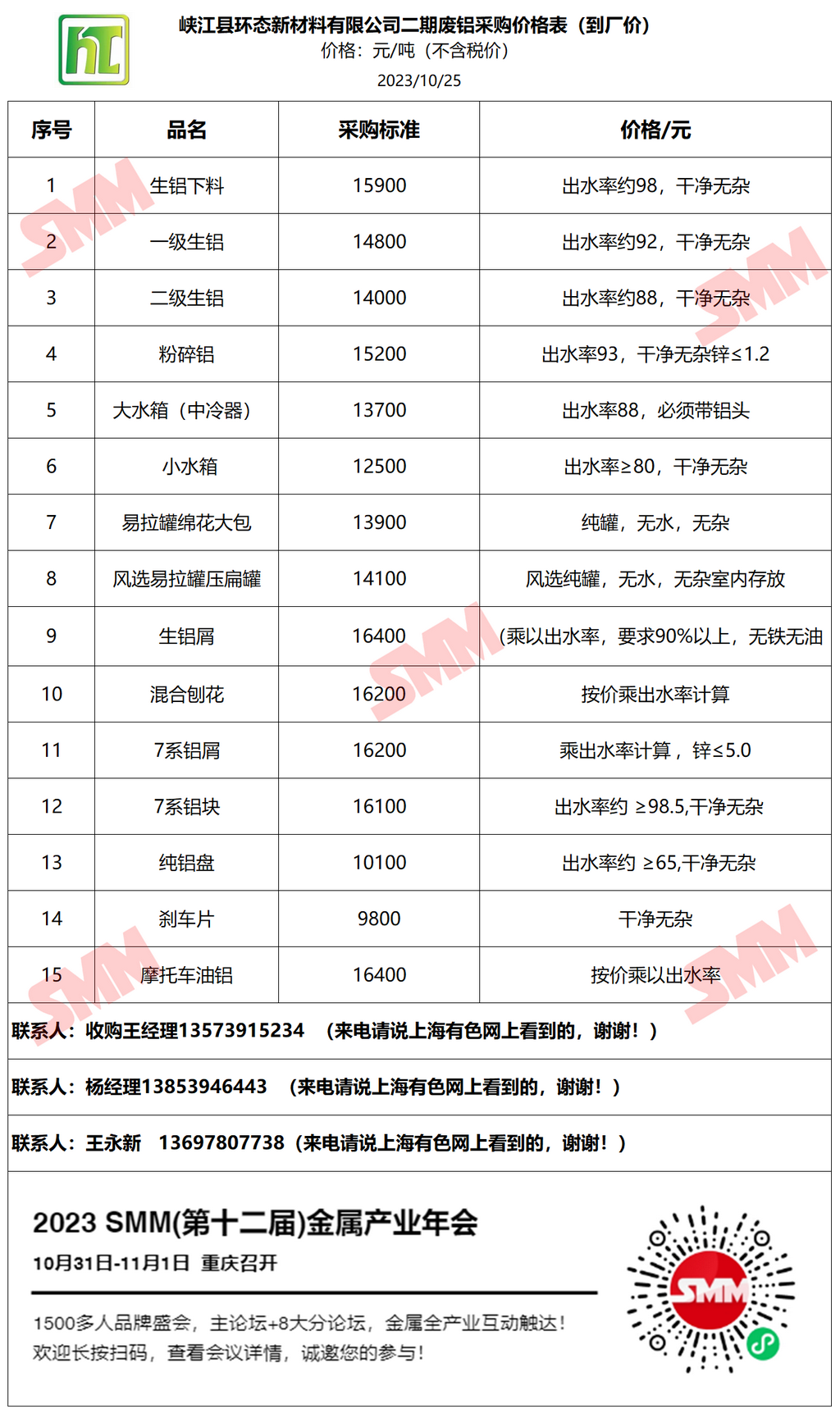再生金属企业报价合作需求,欢迎联系:13585952056 王