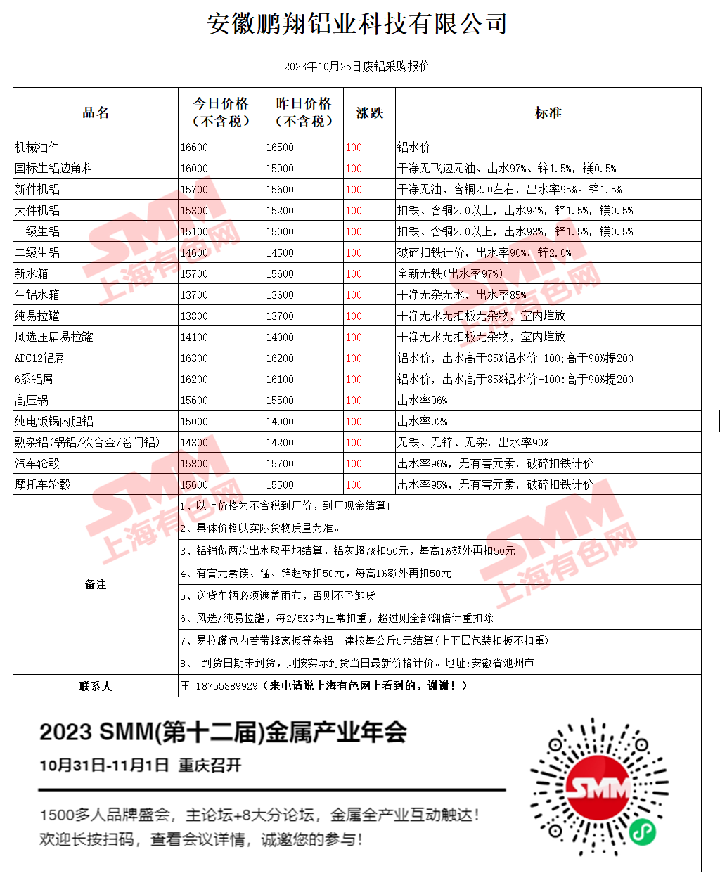 今日安徽鹏翔 废铝采购报价已更新,有货的朋友欢迎联系我们!