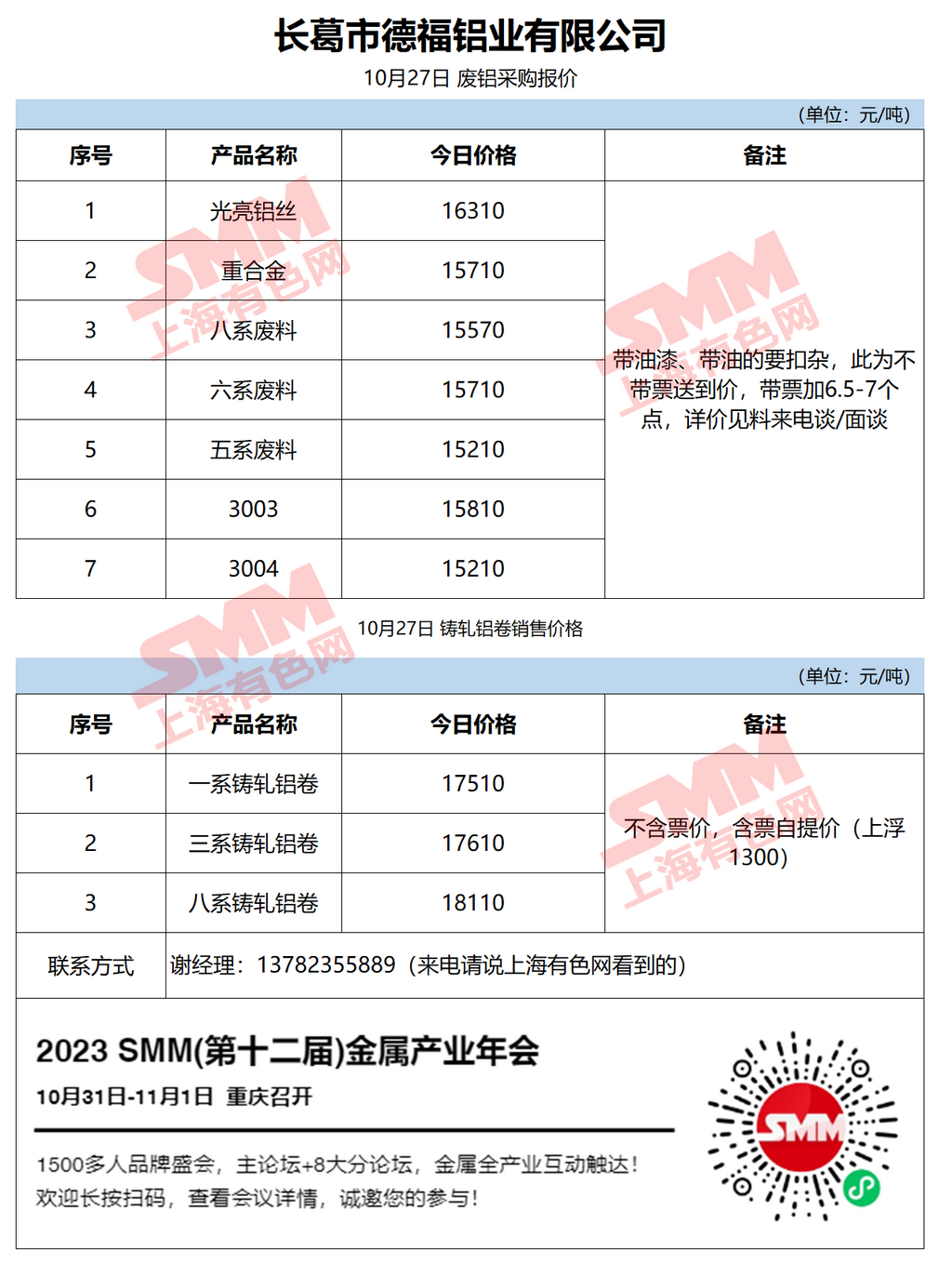 今日长葛德福铝业 废铝采购报价已更新,有货的朋友欢迎联系我们!