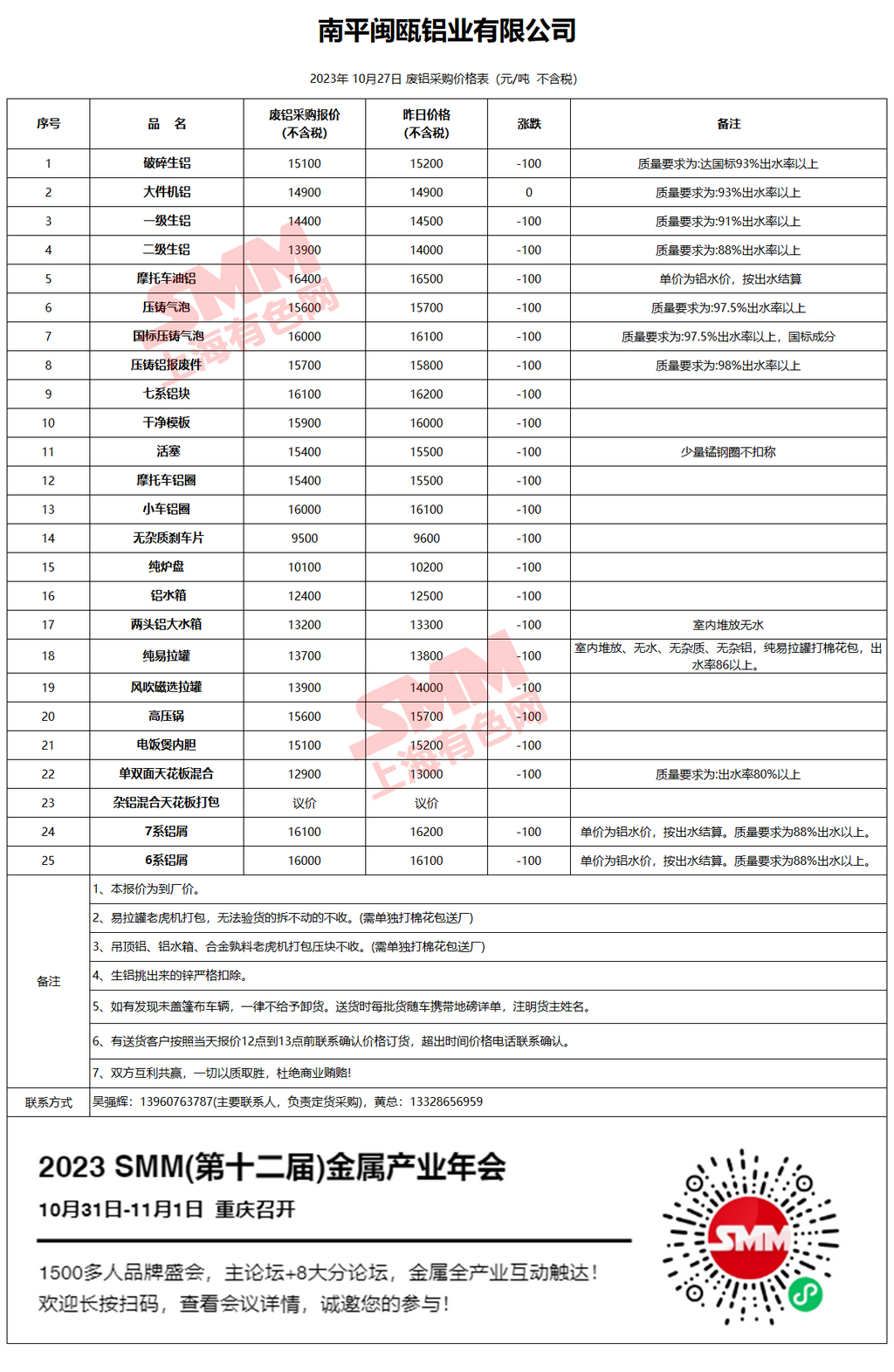 今日南平闽瓯 废铝采购报价已更新,有货的朋友欢迎联系我们!